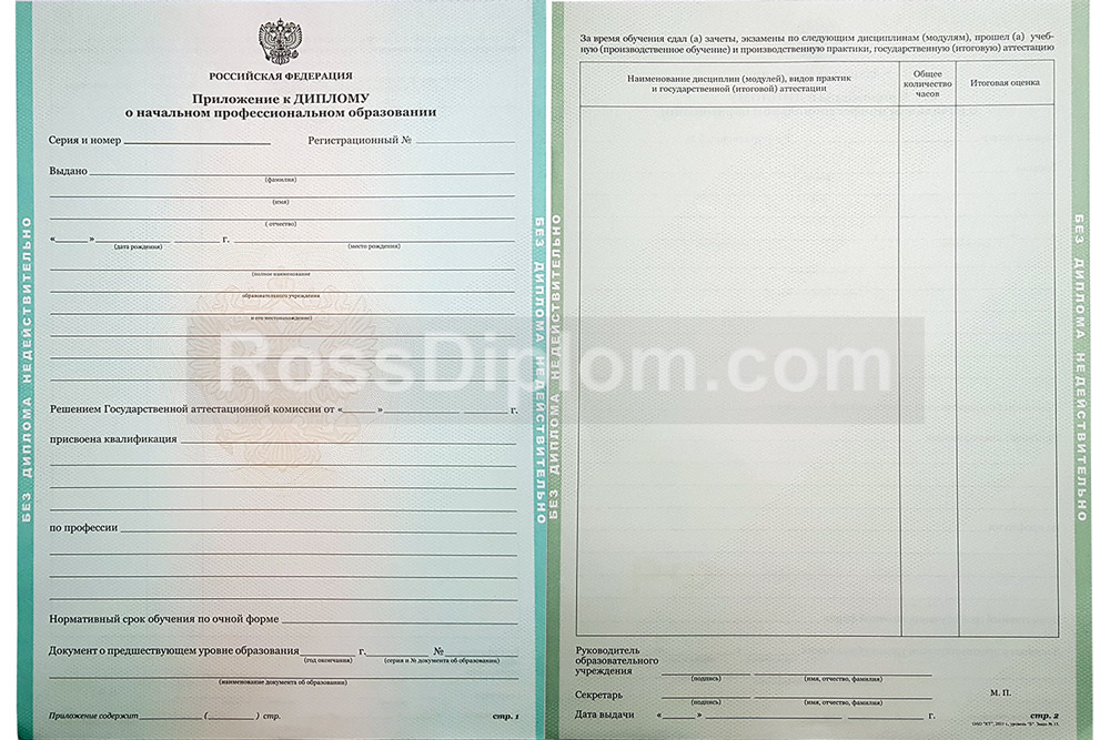 Образцы и цены дипломов ПТУ